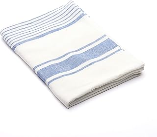 LinenMe Serviette de Bain en Lin 65x130 cm, à Rayures, Blanc/Bleu