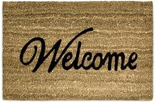 Relaxdays Paillasson WELCOME en fibres de Coco tapis de sol pour porte entrée 60 x 40 cm natte dessous antidérapant caoutchouc PVC essuie-pieds saleté intérieur extérieur intempéries, marron