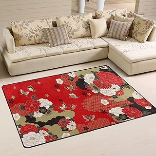 Mnsruu Tapis Japonais pour Salon et Chambre à Coucher Motif Papillons et Fleurs, Tissu, Multicolore, 91cm x 61cm(3 x 2 Feet)