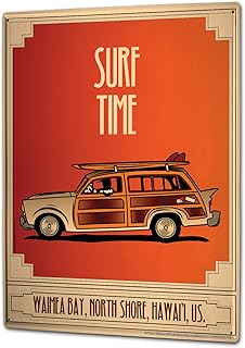 LEotiE SINCE 2004 Plaque en Métal Métallique Poster Mural tin Sign Nostalgique Platine Temps de Surf Vamea Bay Hawaii Voiture