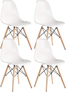Ensemble de 4 chaises de salle à manger scandinaves Chaise de salon de mode pieds en bois de hêtre massif Chaise confortable adaptée à la chambre et au salon café chaises salle manger (Blanc)