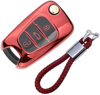 Coque en Silicone pour Clé Kia Hyundai - Cover Housse TPU Souple en Chrome pour Télécommande Kia Hyundai Sportage Rio Ceed Picanto Optima iX35 i30 Tucson Porte-clé Protection (Rouge)