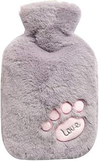 Bouillotte avec housse Polaire, Bouteille d'eau Chaude Bouillotte Peluche Bouillotte à Couvercle Polaire Bouillotte amovible et lavable, Aide à Fournir Chaleur et Confort (Grau)
