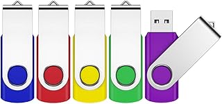 Lot de 5 Clé USB 2 Go USB 2.0 Flash Drive Mémoire Stick Stockage Rotation Disque Pendrive Lecteur USB Flash Conception de Rotation, avec Indicateur LED et 10 Cordes (2GB, 5 Couleurs)
