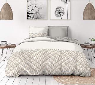 COUETTES ET CETERA Parure de Couette 3 pièces L’Art Déco Housse de Couette - Percale de Coton 80 Fils- 2 Personnes - Gris/Beige/Blanc (220_x_240_cm)