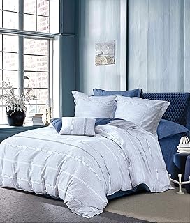Générique Parure de Lit 2 Personnes 100% Coton Percale 80 Fils Finition Bouton Housse de Couette 240x220cm avec 2 Taies d'oreillers 65x65cm_n°16 Gris et Bleu Marine