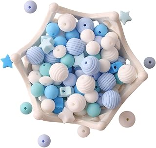 let's make Perles de Dentition de Bébé en Silicone 100 pcs Sans BPA Dentition de Qualité Alimentaire Série Bleue Collier/Bricolage Bébé Sucette Chaîne Bijoux