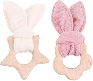Mamimami Home 2pc Bébé d'allaitement Anneau De Dentition Oreille De Lapin En Bois Animal De Qualité Alimentaire Hochet Organique Apaiser Bébé Jouets De Dentition