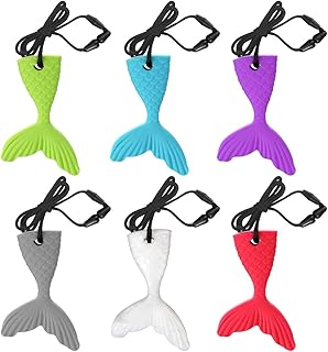 Welltop Collier à mâcher Sensoriel, 6 pièces collier de dentition sensorielle silicone de qualité alimentaire à mâcher pendentif jouets de dentition pour bébé, enfants autistes
