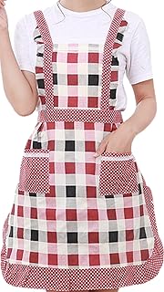 CAOLATOR Tablier Cuisine Chef Ménage De Cuisine avec Poches Cadeau Tablier pour Femmes Chef Tablier Serviettes de Cuisine Tablier en Coton Peinture Jardinage Rouge Point d'onde